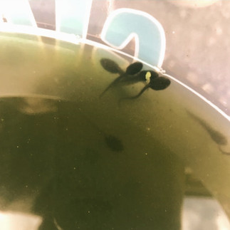 We have had our tadpoles for 7 weeks now and the children have been able to watch their development from eggs in jelly to our strong, large headed, speckled tadpoles.